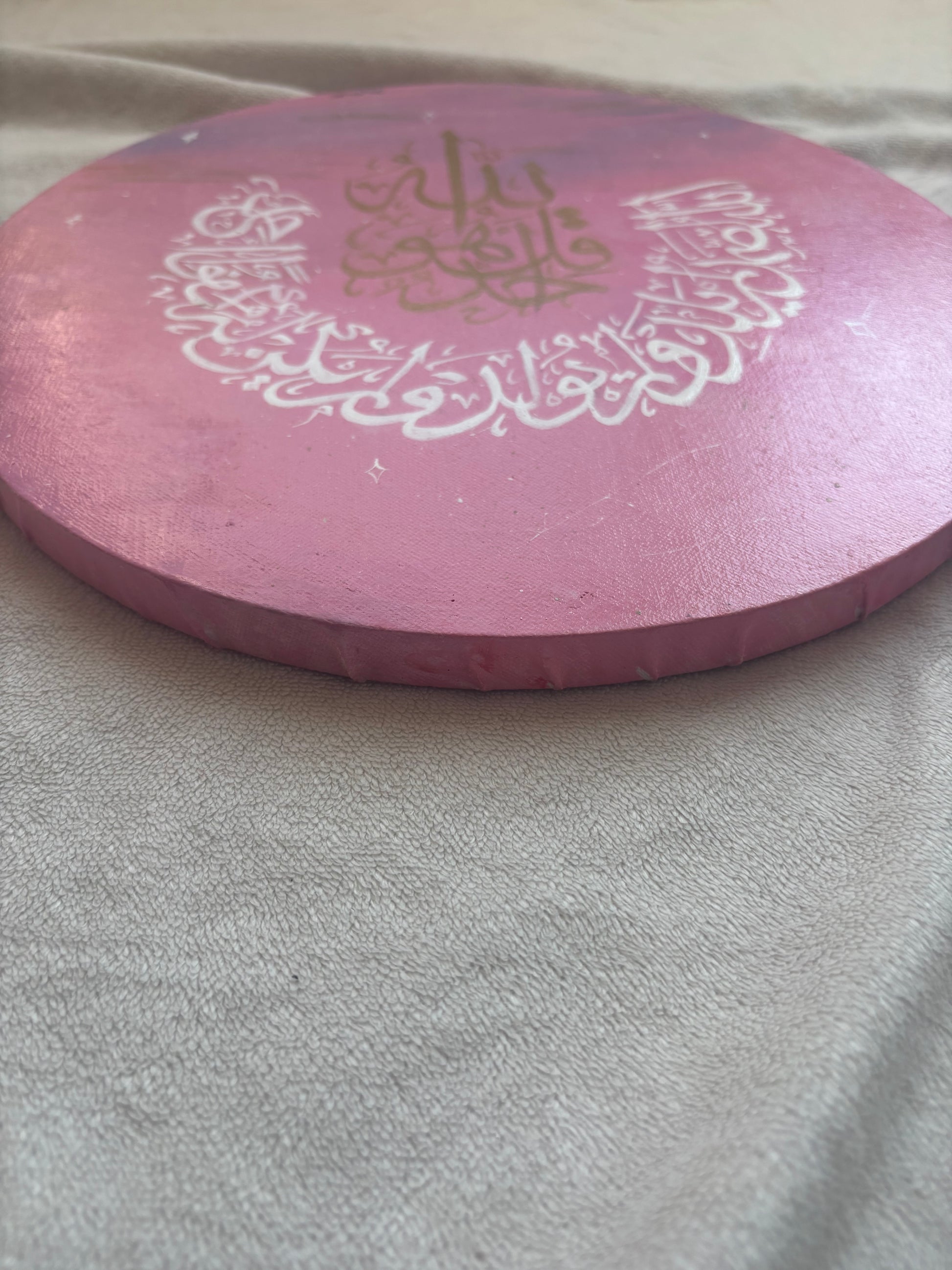 A soft hand-painted Islamic artwork inspired by Surah Al-Ikhlas (سورة الإخلاص), symbolizing divine oneness and purity of faith. Designed to bring calm and spiritual harmony into any space.